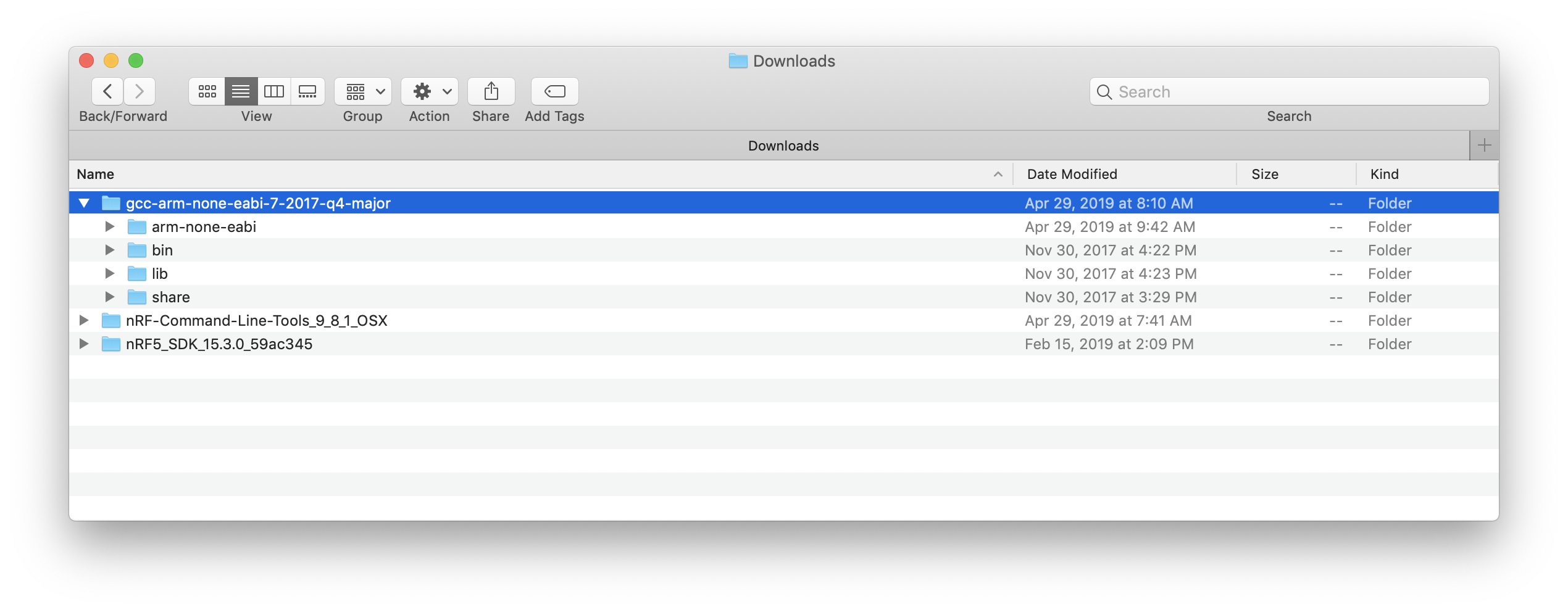 The next software package that we need to install is the GNU Arm Embedded Toolchain which includes the compiler (gcc) and debugger (gdb) for the Arm architecture (which the nRF52840 chipset is based on).