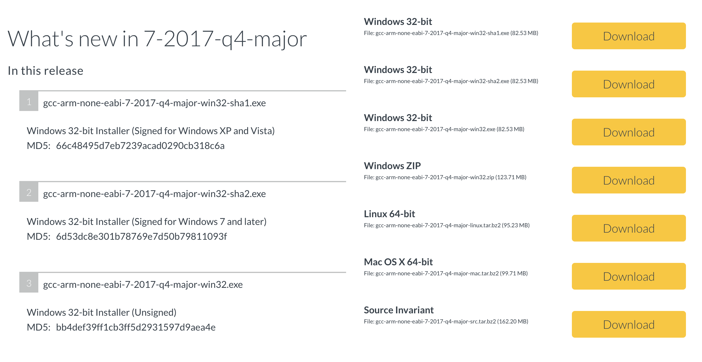 Direct link to download the GNU Arm Embedded Toolchain (version 7-2017-q4-major)