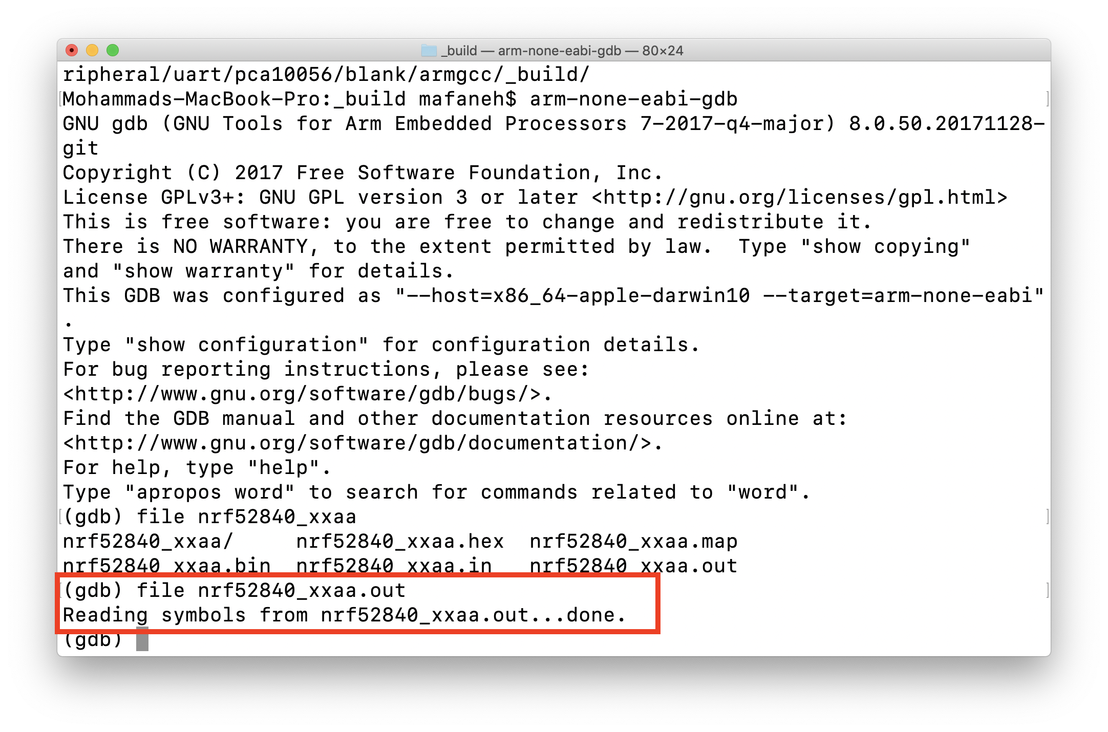 (gdb) file nrf52840_xxaa.out