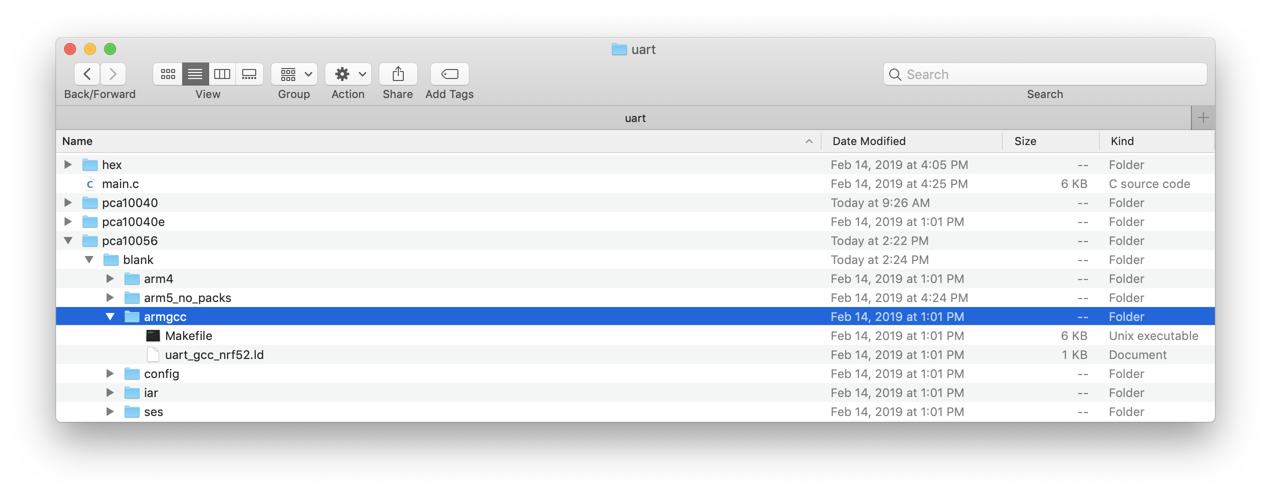 In our tutorial, we’ll be using the UART example included as part of the nRF5 SDK (version 15.3.0). This example is located at: